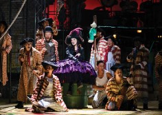 Peter Pan oyunundan Captain Hook (Anna Francolini) ve korsanlar.