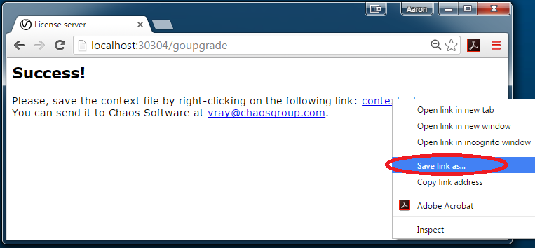 5. Bu dosyayı şirket ve sipariş bilgileriyle birlikte sales@chaosgroup.com adresine e-mail olarak gönderiniz.